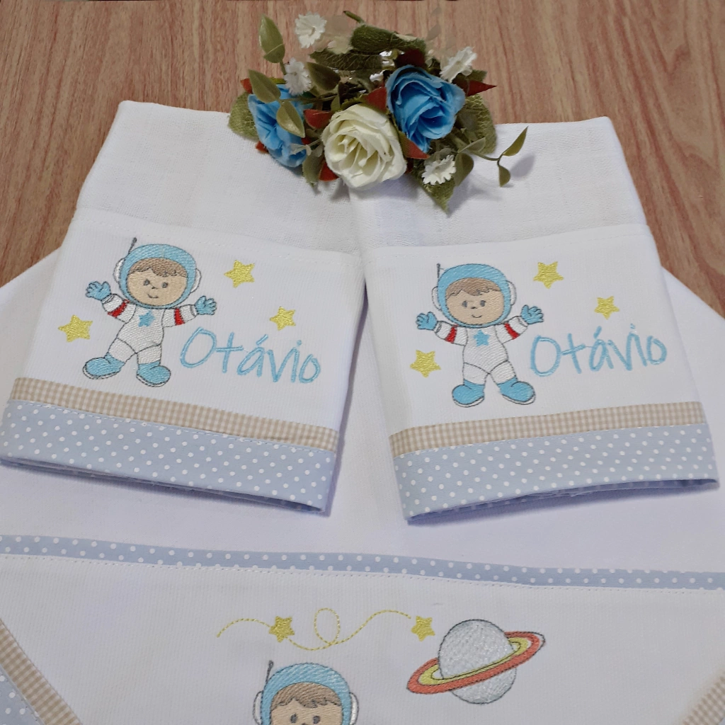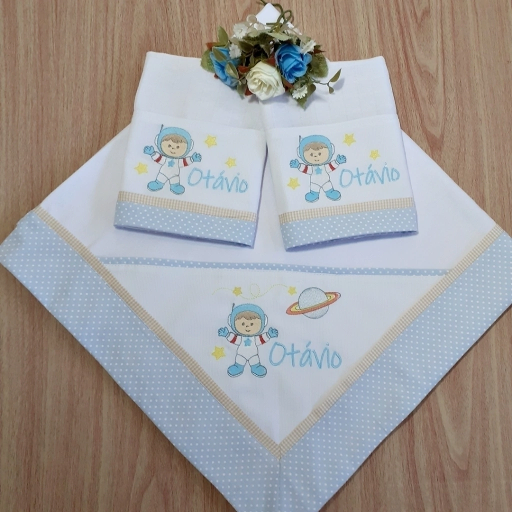 Kit cueiro e fraldinhas de boca. Produto exclusivo para o enxoval do bebê. Entregamos em todo o Brasil.