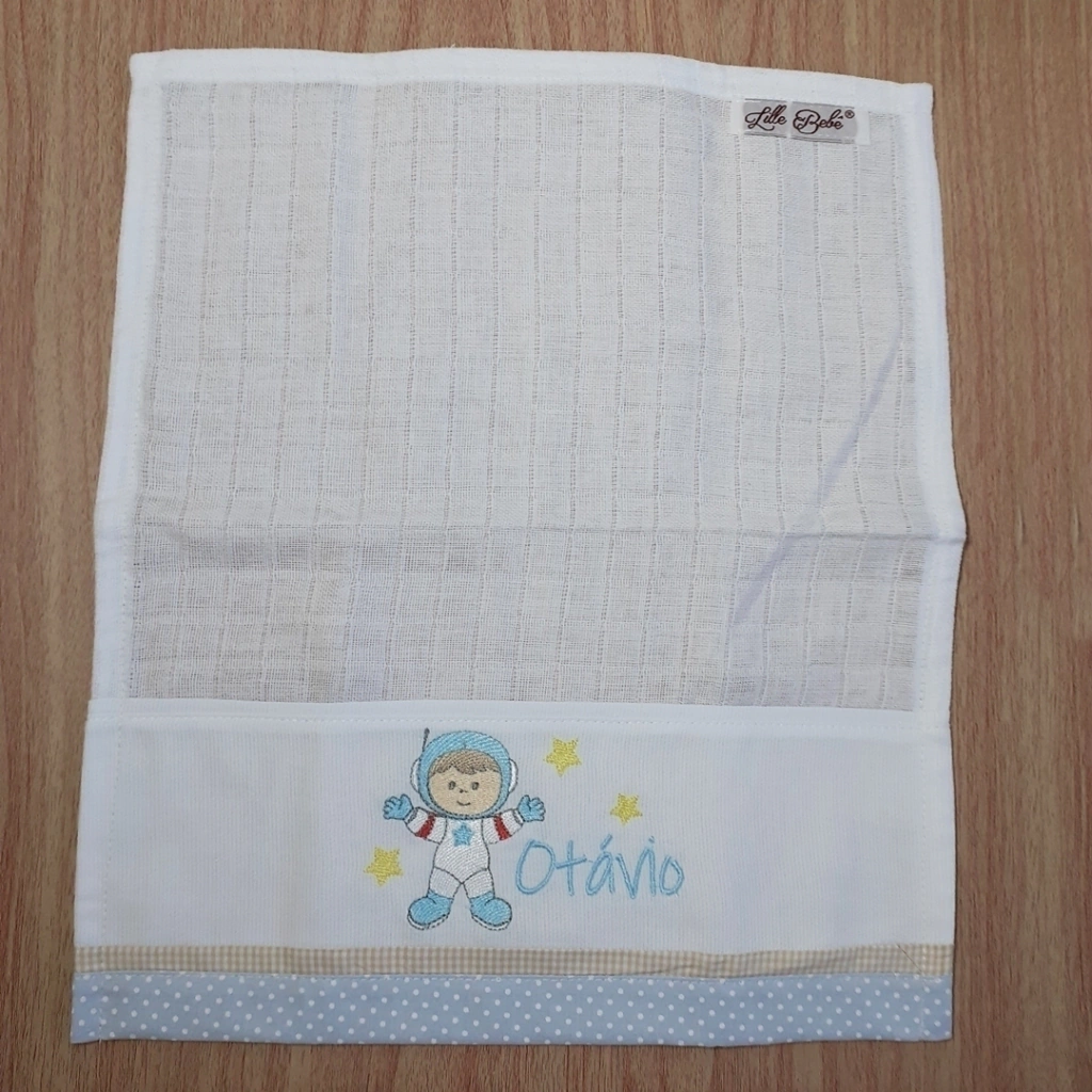 Faixa com aplicação do bordado com nome do bebê e tema da sua preferencia